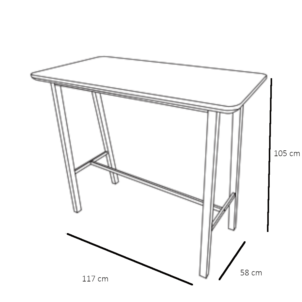 Fix magasságú, festett fekete fém vázas, téglalap alakú, tölgy színű asztallapos bárasztal. Egyszerű, letisztult stílusával bárki otthonába tökéletes kiegészítő lehet.