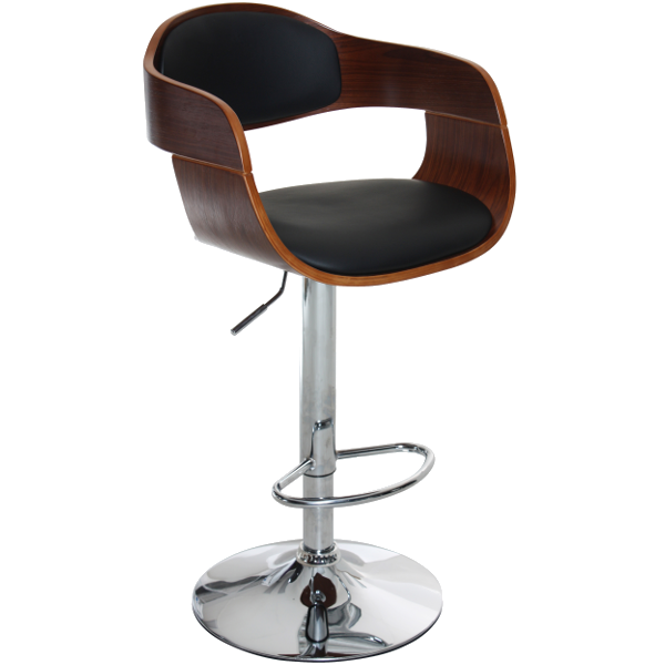 Hajlított fa bárszék. Fekete/dió színben. Mérete: 49x91-112x50,5 cm.