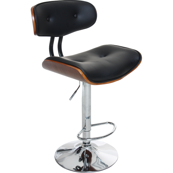 Hajlított fa bárszék fekete pu/dió 51x96-117x58cm