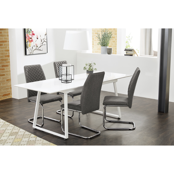 Aaron asztal, mérete 160-200x80x75 cm - 20 mm lapvastagság - nyitható asztal - fehér lap, porszórt fehér láb - színkronvasalat - vendéglap az asztallap alatt