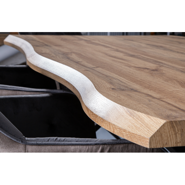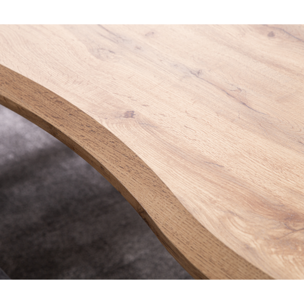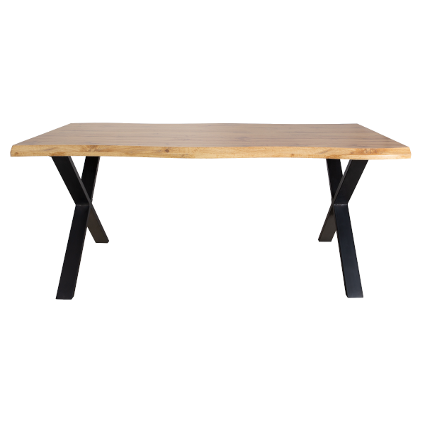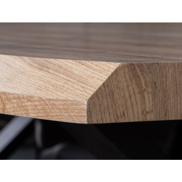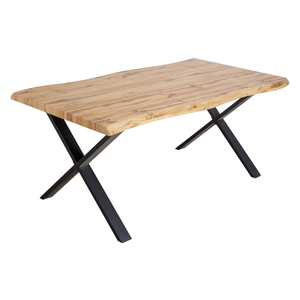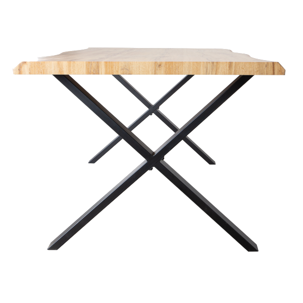 Macau étkezőasztal 180x100x76 cm méretben; fekete matt színű X-lábakkal; asztallap: tölgyfa megjelenésű, 50mm MDF papír borítással.