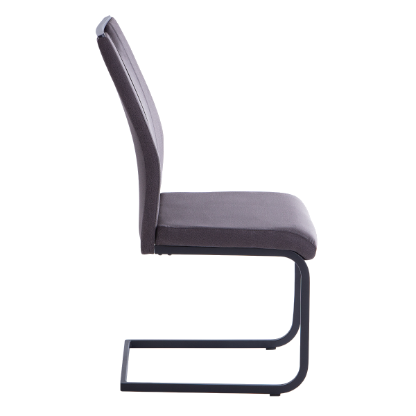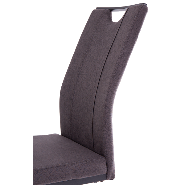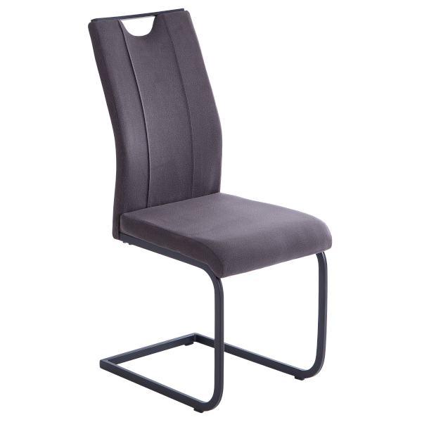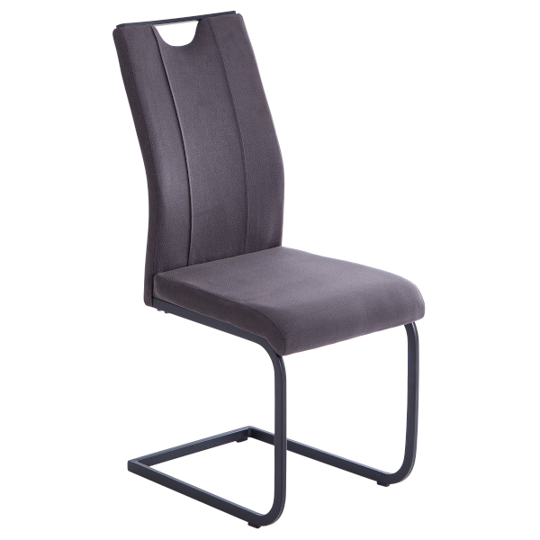 Trieste 5 étkezőszék antracit színű bőr hatású 100% poliészter felülettel, 43x59x99 cm méretben; fekete vázú csúszótalppal; a háttámla fekete fogantyúval.