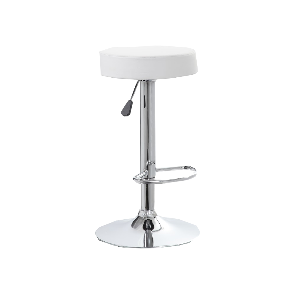 "STELLA" bárszék fehér színben, krómozott fém csőváz, PU ülőfelület, kényelmes, gázliftes állítható magasságú, modern designnal, mérete: 38,5x38,5x64 -85cm, max. terhelhetősége: 90 kg.