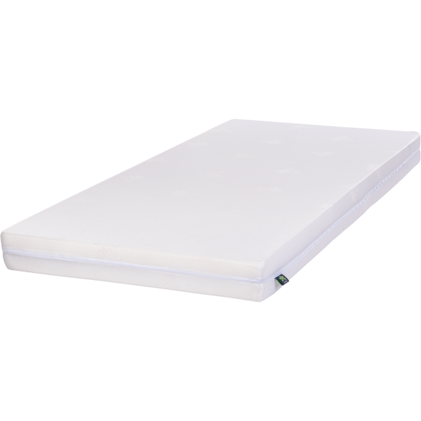 Puhább szivacs-kókusz matrac, levehető, 40 fokon mosható huzattal, maximum terhelhetőség 90 kg.