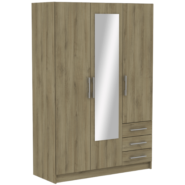 "CHAMPY" gardróbszekrény kronberg tölgy szín. 3 ajtós, 3 fiókos. Mérete129x191,5x51,6 cm.