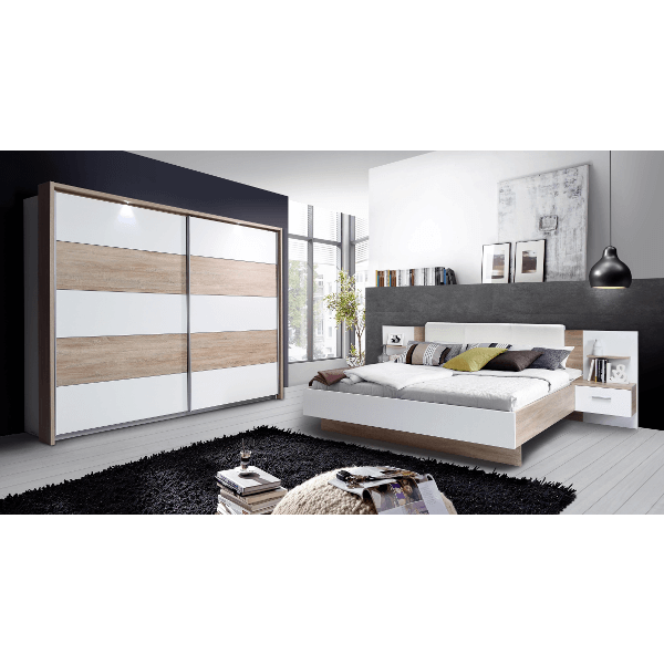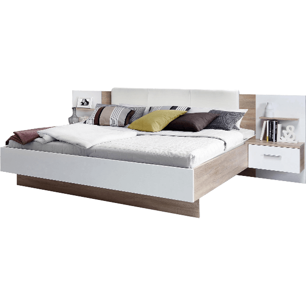 Ginger sonoma tölgy ágykeret éjjeliszekrénnyel. Mérete275,5(180)x95,6x205,7(200) cm.