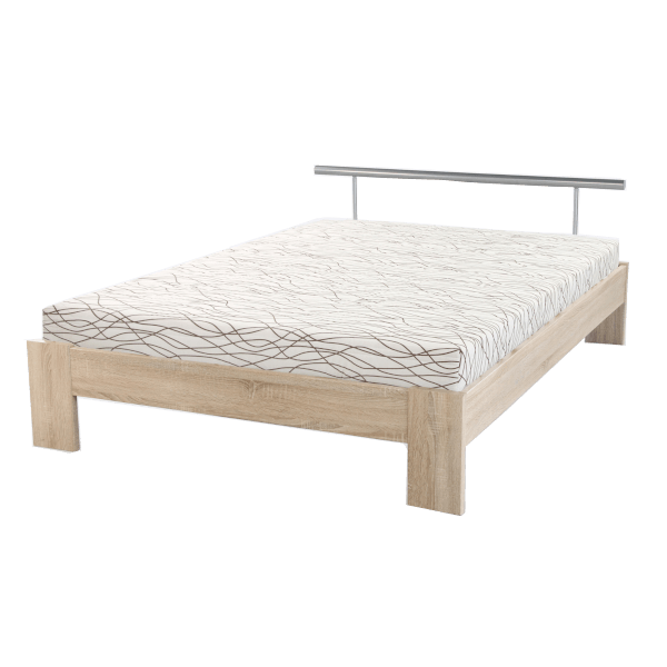 Futonágy mérete: 140x200cm, Állvány MDF tölgy fólia, alumínium színű fejvéggel. Bonellrugós matraccal, ágyráccsal szállítva.