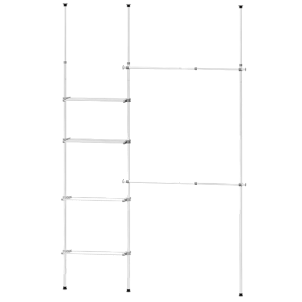 Kihúzható ruhatartó állvány, cipőtárolóval. Mérete182x240-280x30 cm.