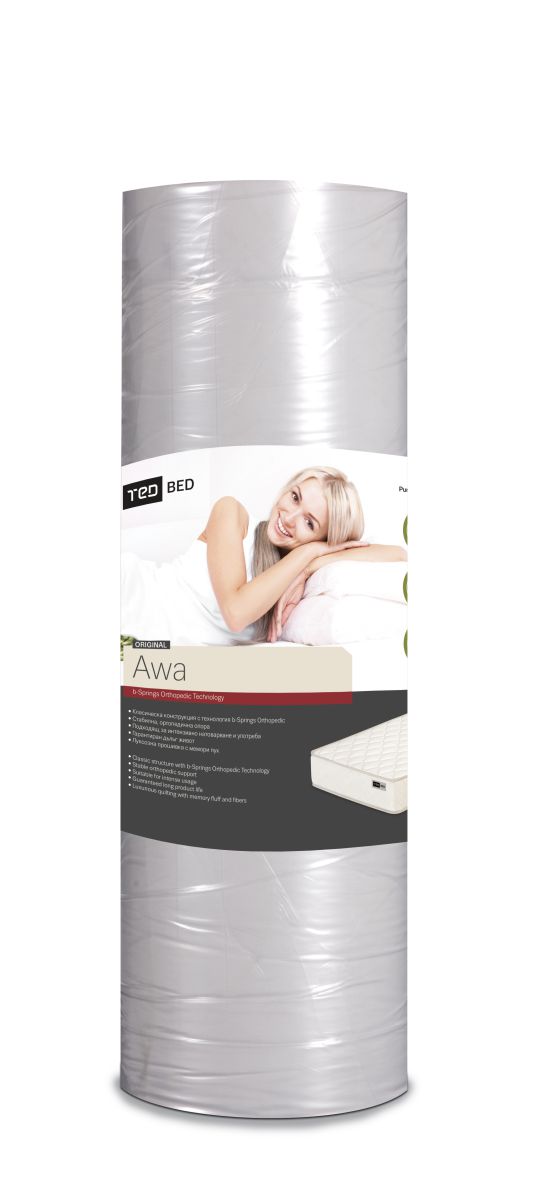 Bonell rugós matrac "Awa" 18cm magas, 4 menetes bonellrugóinak és prémium minőségű poliuretán habbélésének (sűrűsége: 25kg/m3) köszönhetően stabil alátámasztást és extra komfortot biztosít az alvás során. Külső borítása 100%ban poliészterből készült. Mérete: 160x200cm.