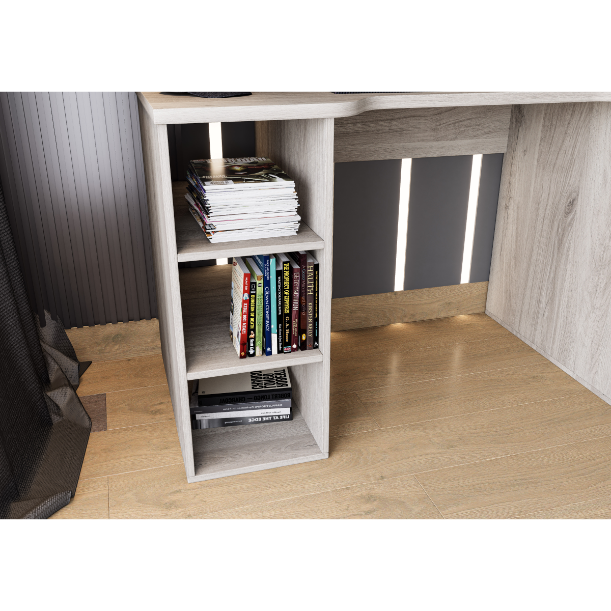 Modern íróasztal, modern sonoma tölgy színben. Innovatív dizájn, széles méretben, extra vastagságú munkalappal, külön hely a számítógépház és a monitor elhelyezésére. Tökéletes, de nem csak gamer játékosok számára.