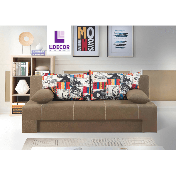 Modern megjelenésű ágyazható kanapé ágyneműtartóval, erősített komfort HR habos ülőfelülettel és nagy kopásállóságú szövettel. Kényelmes hátpárnái megfordíthatóak, egyik oldaluk dekoratív mintás, míg a másik a kanapéval színazonos.