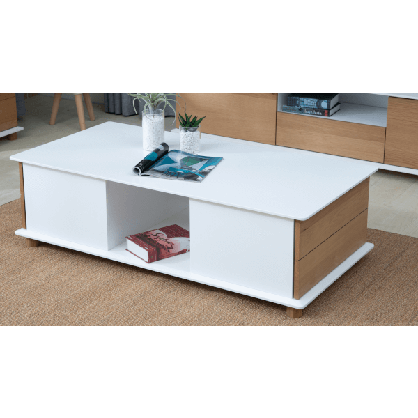 Dohányzóasztal tárolóval tölgy/fehér, 100x60xx35cm