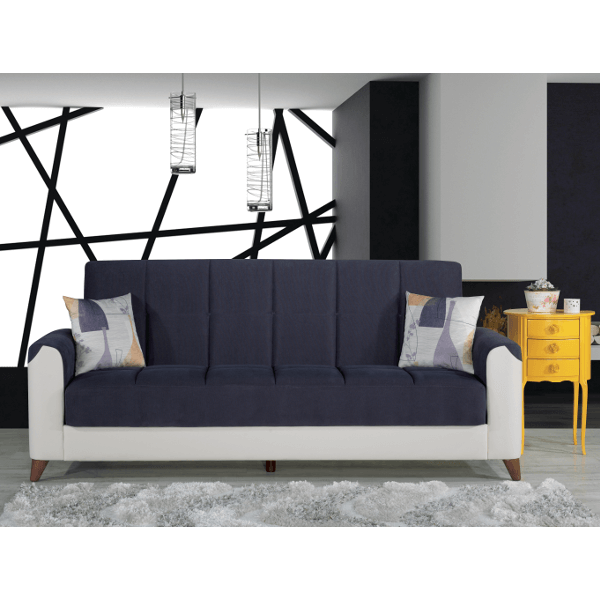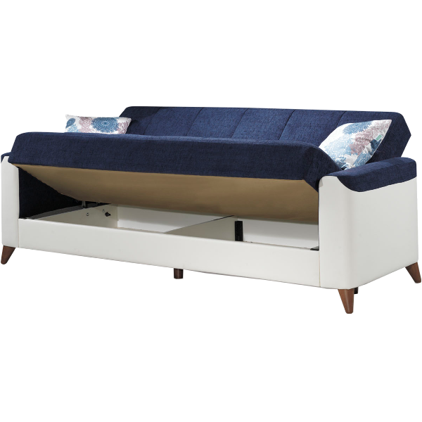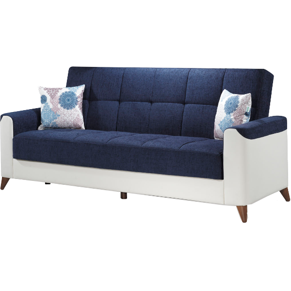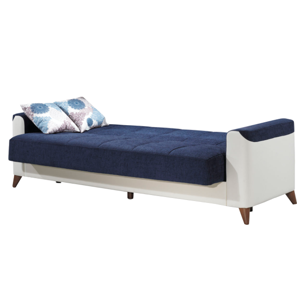 "Sicily" kanapé 225x97x90 cm, fekvőfelülete 120x188 cm. Kék szövet + fehér PU.