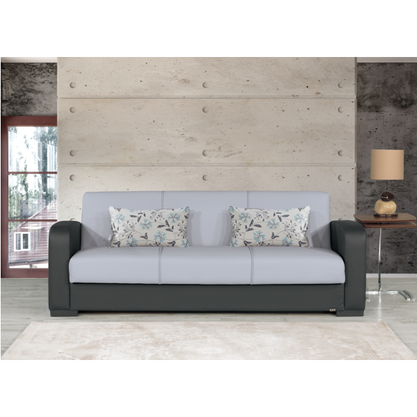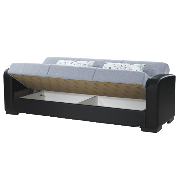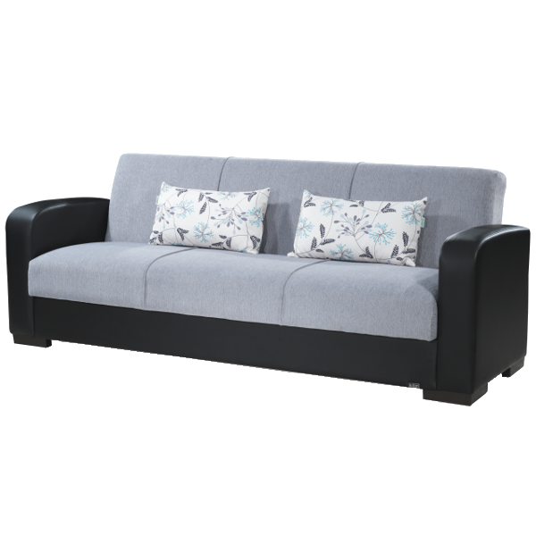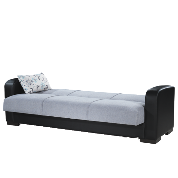 Muno kanapé szürke/fekete színben. Mérete: 220x85x85 cm. Fekvőfelülete: 105x190 cm. Anyaga: szövet és poliuretán.