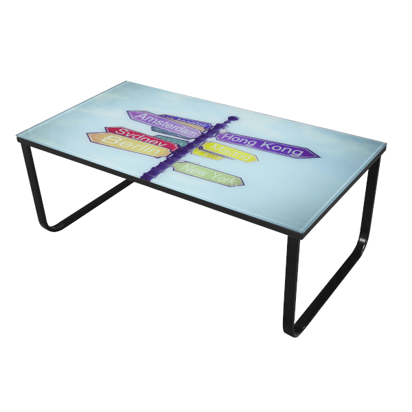 Dohányzó asztal irányjelző tábla mintával, mérete: 105x55x42cm.