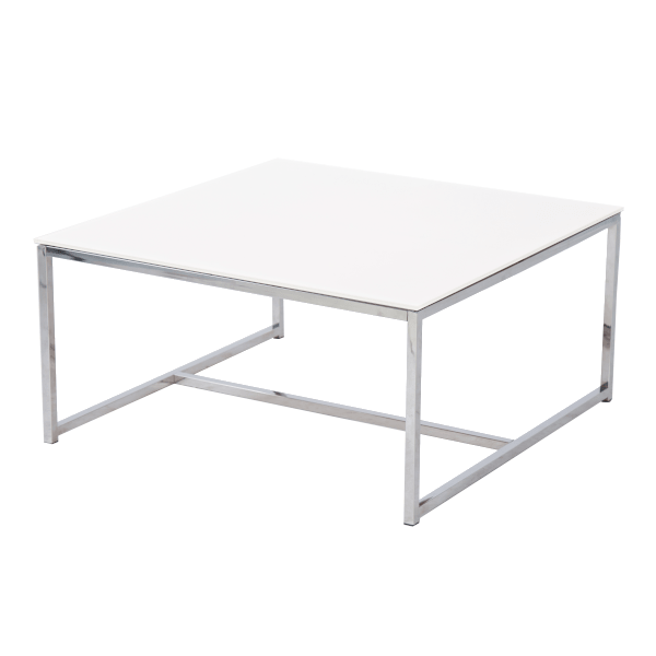 Chic I üveg dohányzóasztal fehér színben. Mérete: 80x80x35 cm.
