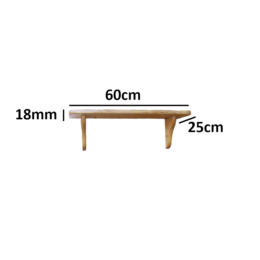 18 mm vastag ragasztott fenyőből készült, két lekerekített sarokkal, fóliában csomagolva. 60x25cm-es méretű polc, ami tökéletes tárolási opció lehet bármely szobában.