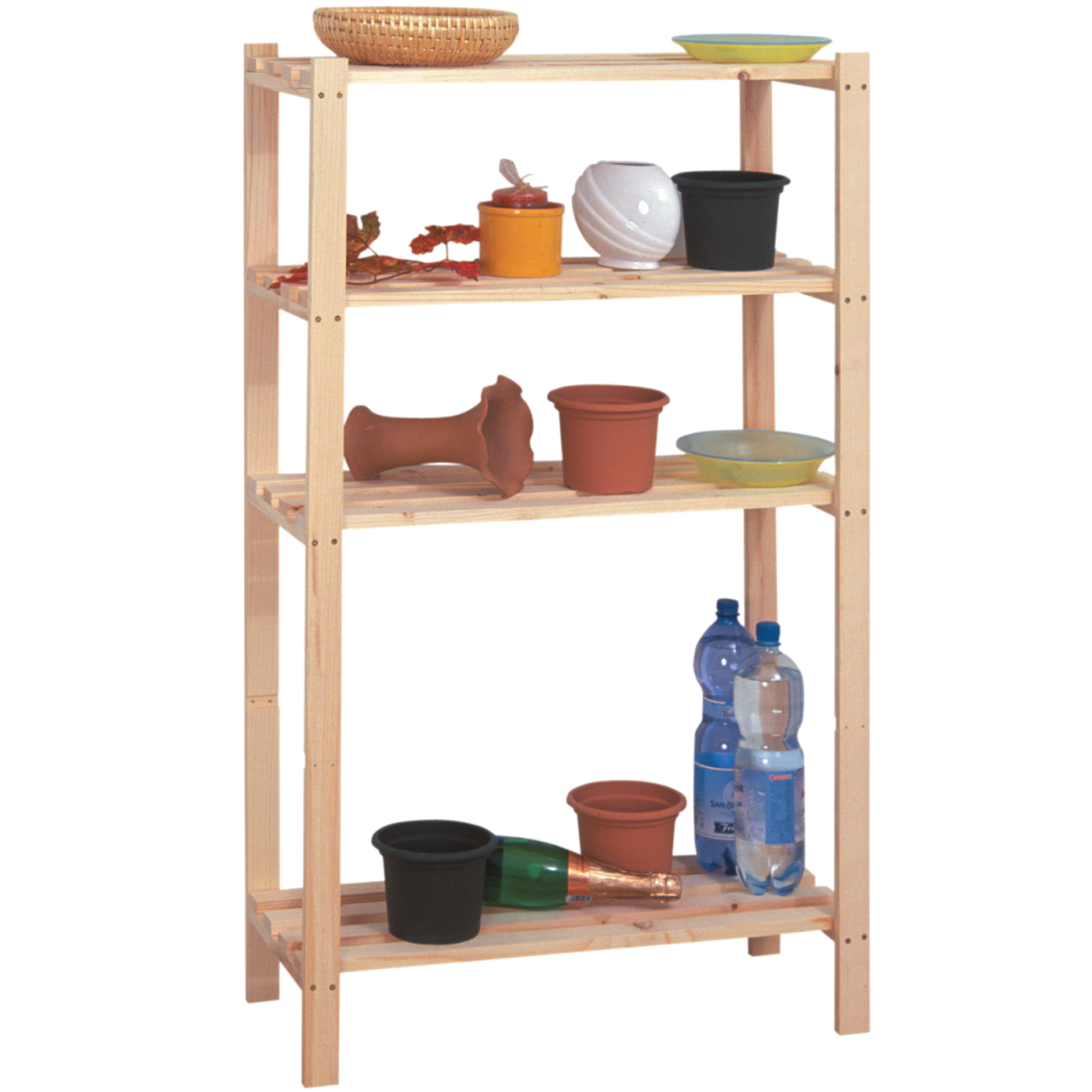 Háztartási polc, tárolásra alkalmas 4-es állópolc, natúr fenyőből, 120x70x30cm.