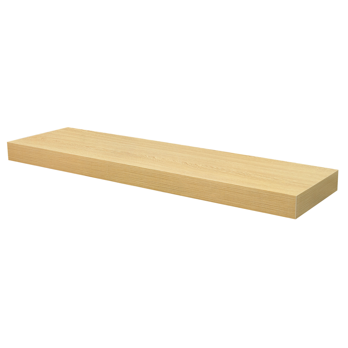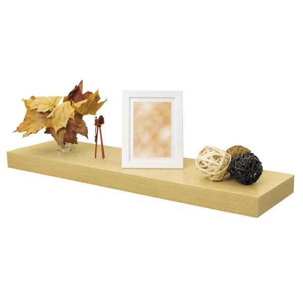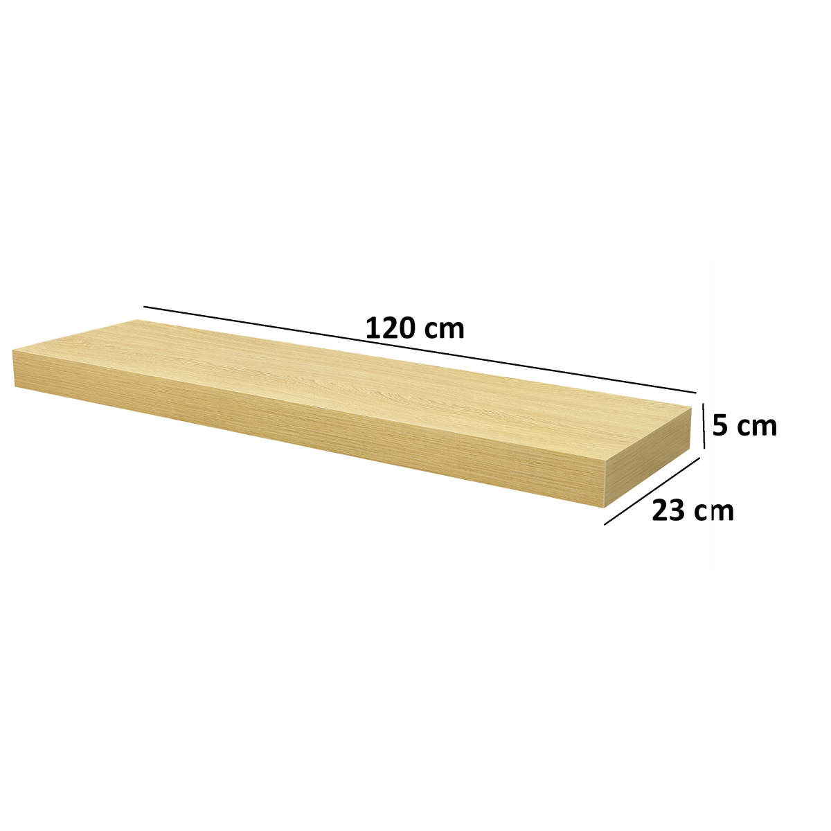 Lebegőpolc világos tölgy színben, rejtett fémkonzollal, 120x23x5cm-es. Nem csak esztétikus, hanem praktikus megoldás is lehet otthonába, hiszen 8kg-ig könnyedén pakolható rá.