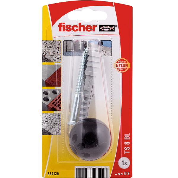Fischer ajtóütköző fekete 1db+dűbel+csavar