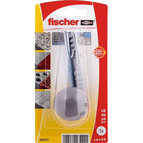 Ajtóütköző "FISCHER" - 1db ajtóütköző 1db dűbellel, 1db csavarral - szürke