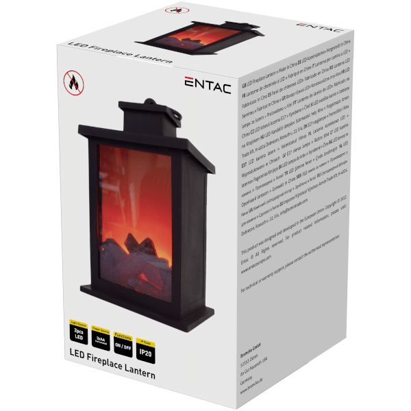 LED fényforrással rendelkező láng imitációs kandalló, kizárólag dekorációs célra, fűtési funkció nélkül. Fekete színű, műanyagból készült; Be-/Kikapcsolóval és 3 db LED fényforrással működő dekorációs termék, mely működéséhez 3 db AA elemre van szükség (nem tartozéka a terméknek). IP20 védettségű, kizárólag beltéri használatra javasolt. Teremtsen meghitt hangulatot otthonába az Entac elemes LED kandallóval.