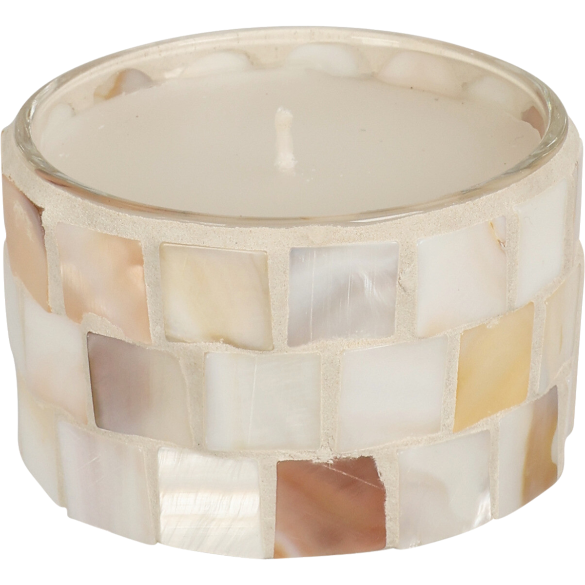 Mutatós dekor illatgyertya üvegtartóban, amely beltérben megfelelő hangulatot teremt.