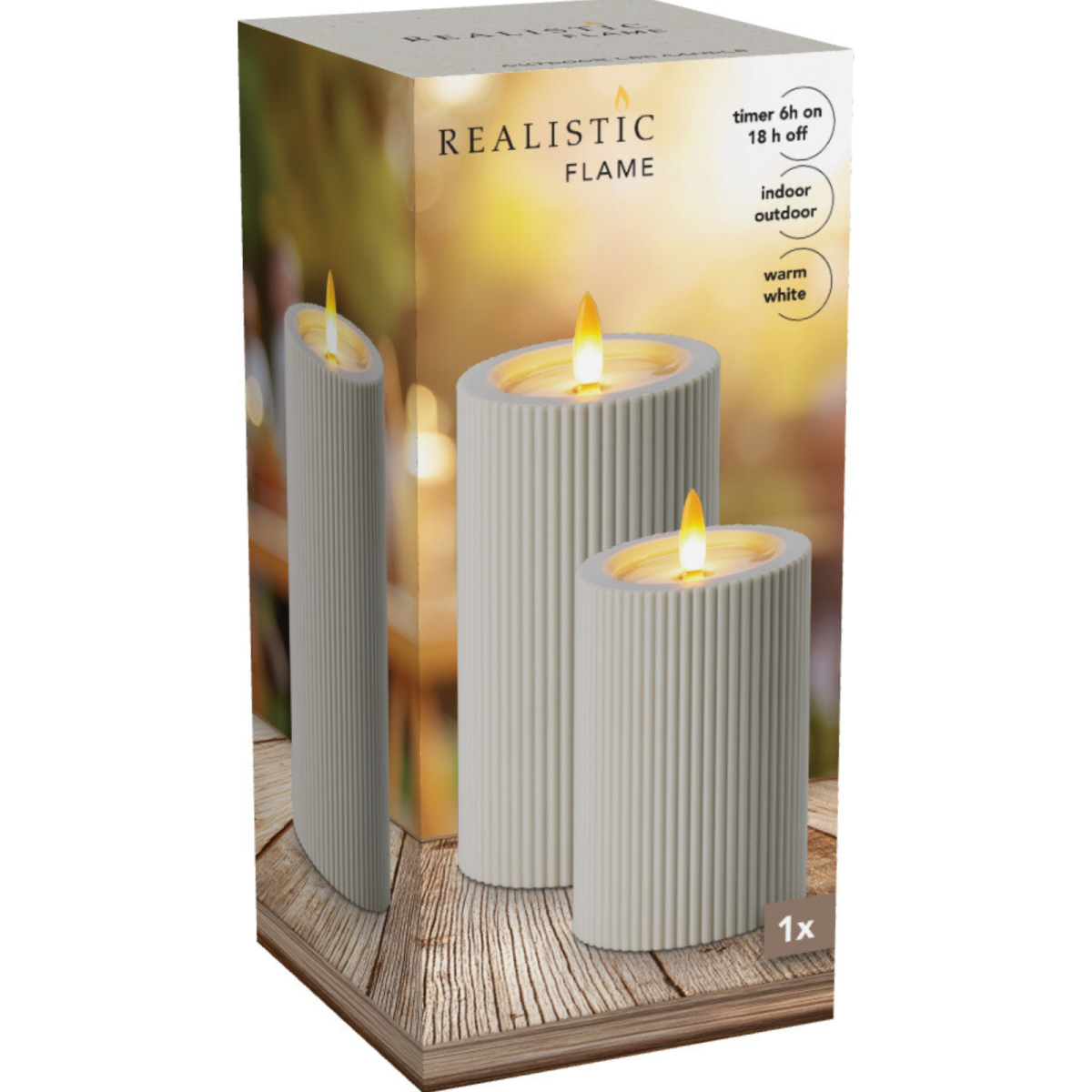LED-es gyertya kültéri, 15x7,5x7,5 cm, időzítővel