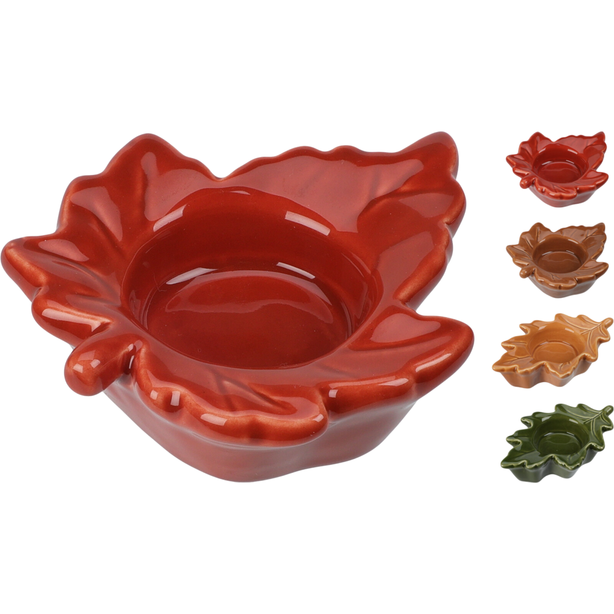 Ez a levél alakú teamécses tartó tökéletes kiegészítője lehet az őszi dekorációnak. Elegáns formájával és természetes ihletésű megjelenésével meleg, hangulatos fényt varázsol otthonodba. Kétféle méretben és négy színváltozatban érhető el, így könnyen megtalálhatod az enteriőrödbe illőt. Dolomit alapanyaga tartósságot és stabilitást biztosít, miközben kifinomult, fényes felületével eleganciát sugároz.