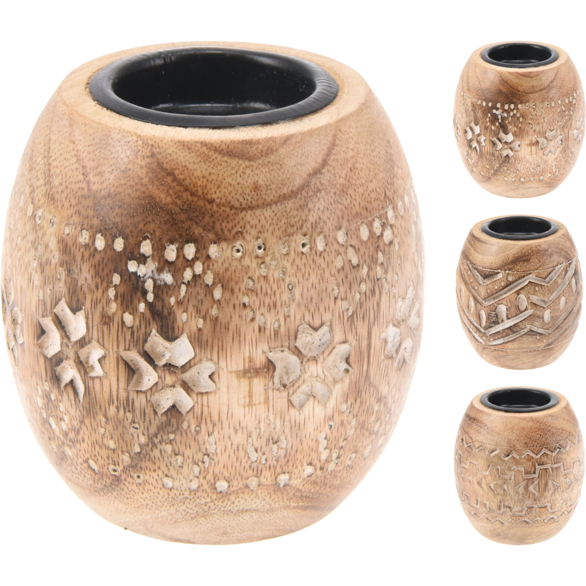Gyönyörű, afrikai formatervezésű, kerek mangófa teamécses gyertyatartó, illatos gyertyával kiegészítve békés légkört teremt. Háromféle modellben. Online rendelés esetén kérjük, szíveskedjen feltüntetni az igényelt modellt a rendelés véglegesítése előtt a megjegyzés rovatban! Továbbá kérjük, szíveskedjen előzetesen érdeklődni az igényelt modell rendelkezésre állásáról, mivel a készlet áruházanként eltérő.