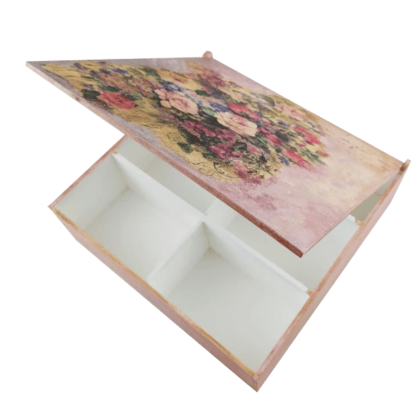 Díszdoboz, 6 fakkos, virág mintával, lézervágott lemezből. Méret: 35x35x6 cm. A Társadalmi Vállalkozások Országos Szövetsége (TAVOSZ), közel száz társadalmi vállalkozást tömörít, melyek nagyrészt hátrányos helyzetű, vagy megváltozott munkaképességű embereket foglalkoztatnak. Küldetésük, hogy a társadalmi vállalkozásokat jobb helyzetbe hozzák a piacon, és a hazai nagyvállalati szektor szereplőivel gazdasági, kereskedelmi együttműködéseket alakítsanak ki. A tagok által gyártott termékeket - melyek többnyire lakásdekorációs és lakástextil termékek - az ÖkoDeko fantázianév alatt értékesítik.