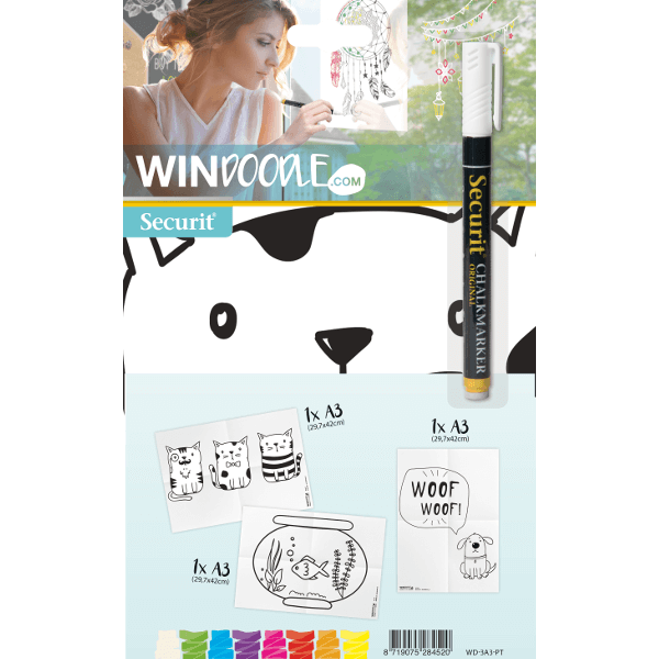 SECURIT ABLAK SABLON SZETT - HÁZIÁLLATOS 3 DB-OS, AJÁNDÉK KRÉTAMARKERREL