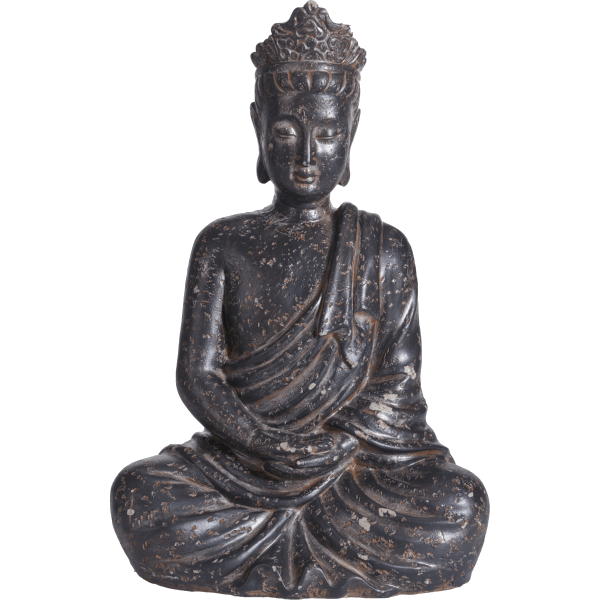 Ülő buddha sötét barna színben, 20,5x13,5x31,5 cm méretben. Anyaga: cement.