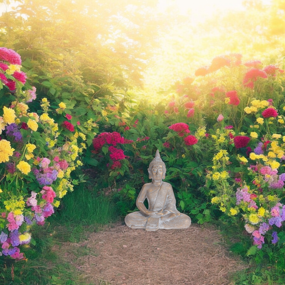 Cementből készült ülő Buddha dekoráció, ami bármely kertet feldobhatja. 49cm-es, így nagy helyet nem foglal, antik arany színe, pedig színt és egyediséget vihet kertjébe.