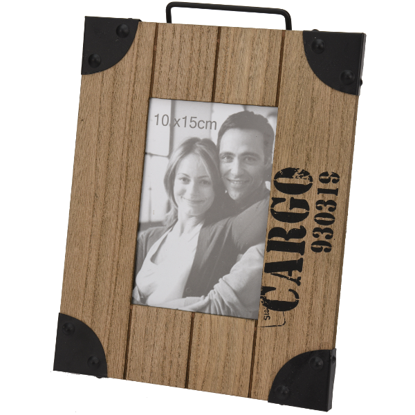 Fa képkeret 10x15 cm fotó számára, anyaga: fa, fém dísszel, mérete:190x240x170 mm.