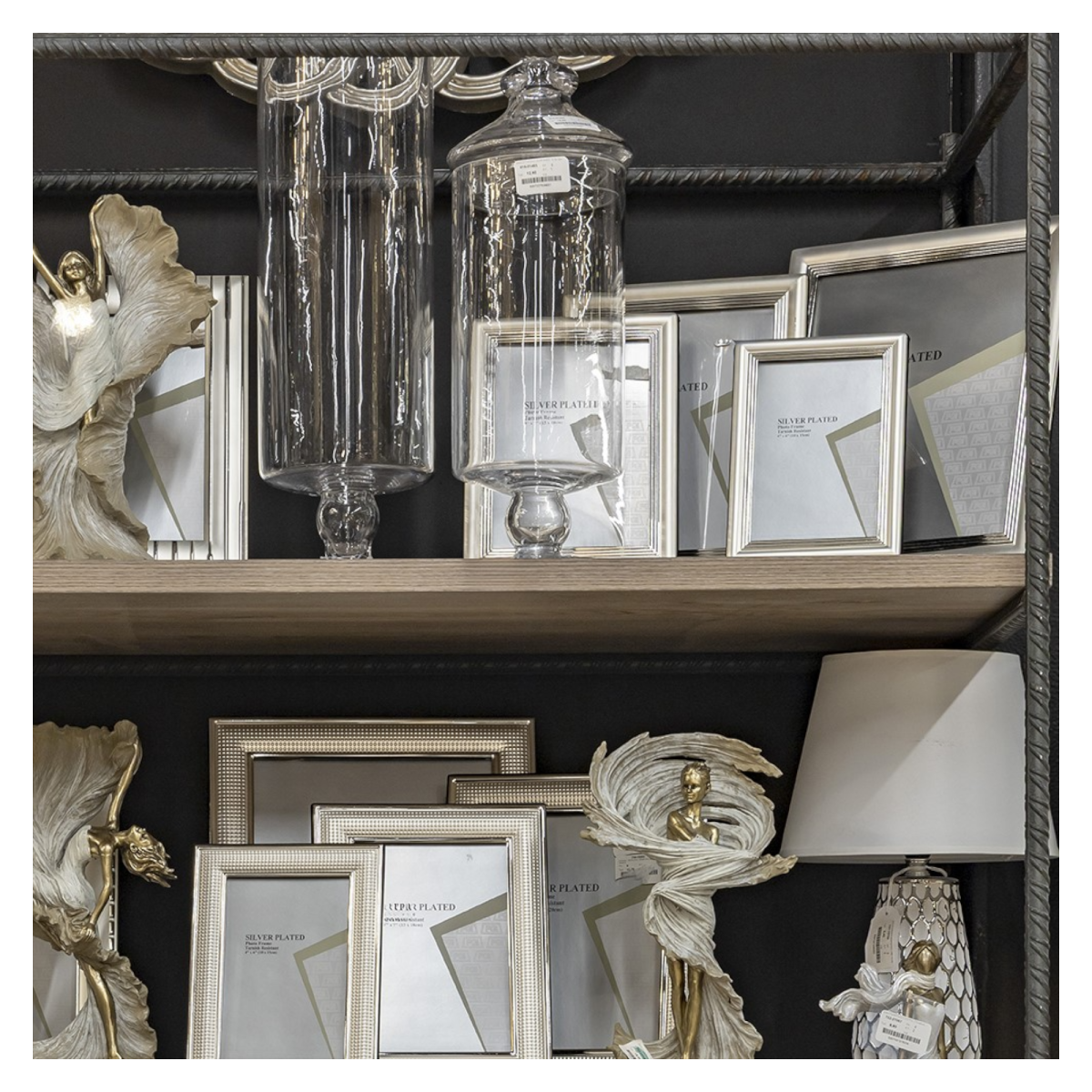 Ezüst színű, fém asztali képkeret, amely klasszikus megjelenésével jól illeszkedik modern és hagyományos enteriőrökbe is. Egy darab 20×25cm-es kép kihelyezésére alkalmas. Asztalon, polcon, komódon vagy párkányon állítva használható. A keret nem igényel összeszerelést, azonnal kihelyezhető. Tisztítása egyszerű: enyhén nedves törlőkendővel javasolt.