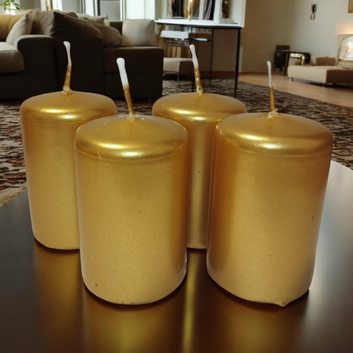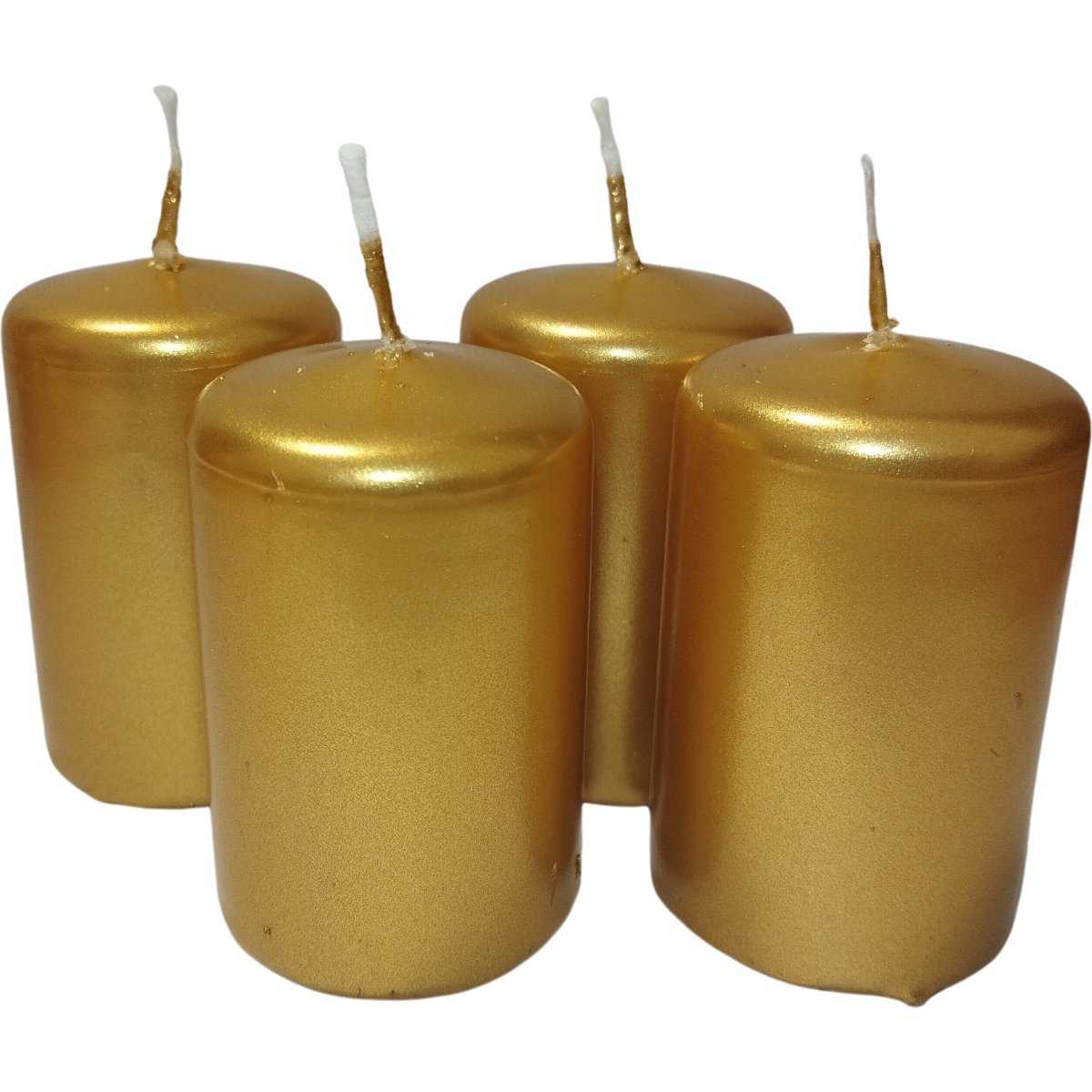Négy darab adventi gyertya metál, arany színben. Az adventi gyertya jelzi az adventi időszak kezdetét és a karácsonyi ünnep előkészületeit szimbolizálja. A metál, arany színű adventi gyertya tökéletesen illeszkedik az otthoni dekorációba, legyen szó az étkezőasztal közepéről vagy akár nappalink ékes pontjáról.