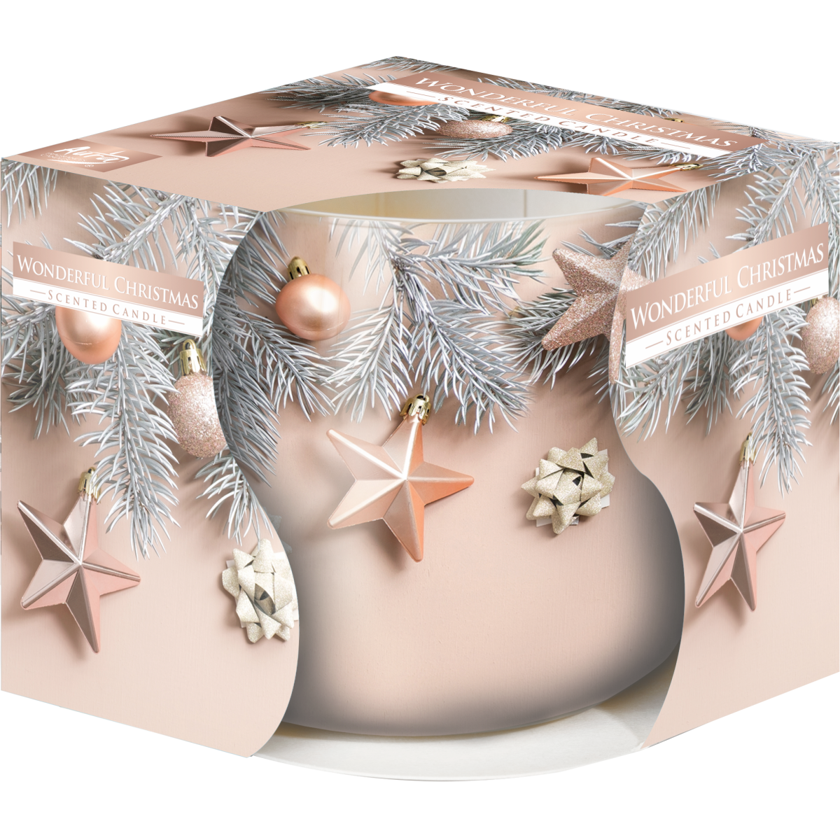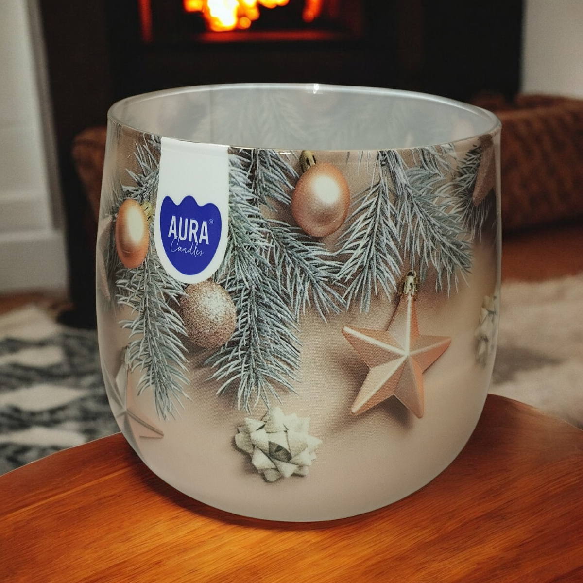 Fűszeres illatú, karácsonyi mintával ellátott illatgyertya. Tökéletes ajándék vagy akár meghitt dekoráció is lehet bármely helyiségbe, hiszen a mintás üvegen át a fény igazán egyedi hangulatot teremt.