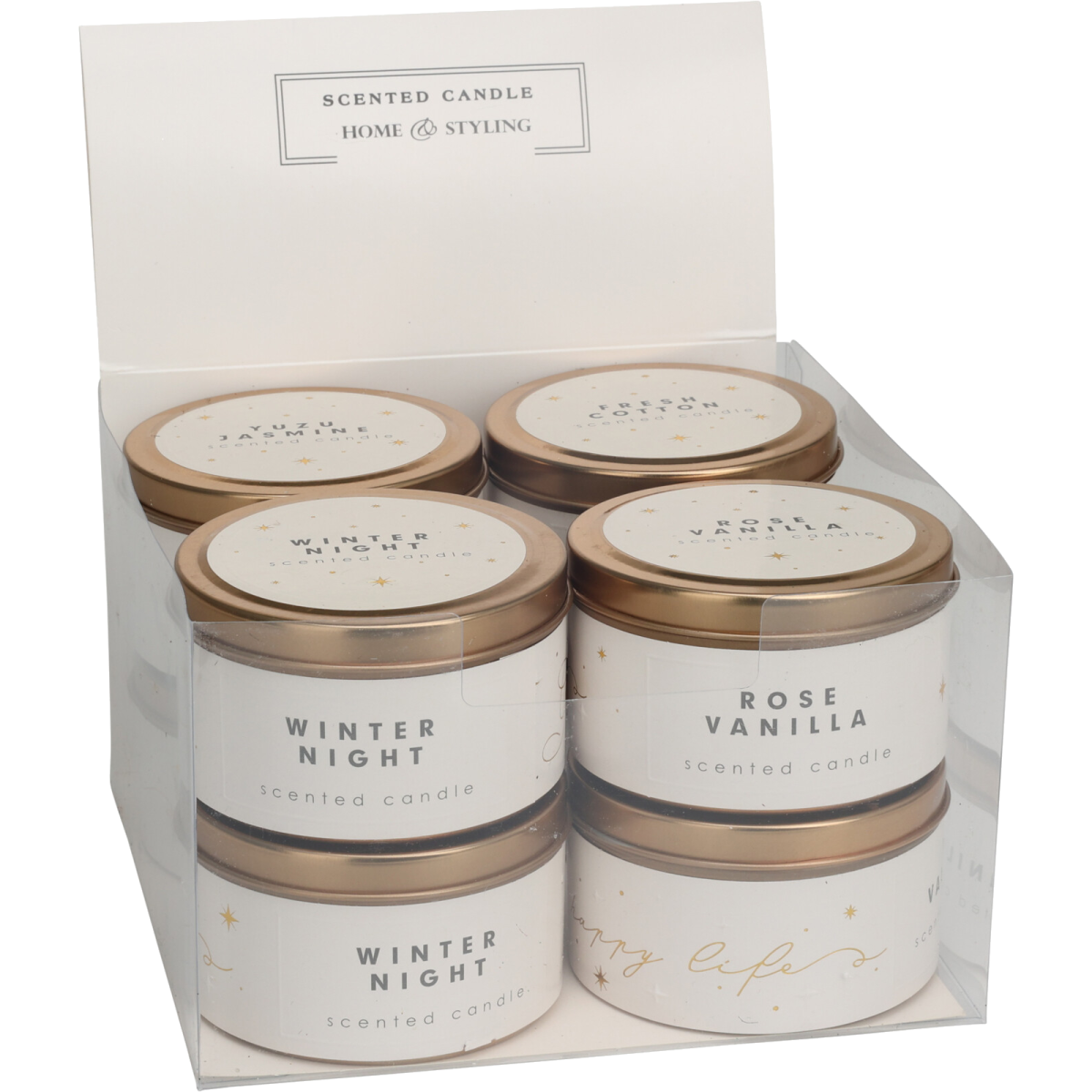 A termék egy dekoratív gyertyakészlet, amely különböző illatokkal kapható. Fém tartóban helyezkedik el, melyet egy elegáns fém tető zár le, így az otthoni dekoráció részeként is megállja a helyét. A gyertyák méretei 5x8cm, ami ideális méret a lakás bármely pontján való elhelyezésre. A 4 különböző illat lehetővé teszi, hogy mindenki megtalálja a személyiségéhez leginkább illő darabot: téli éjszaka, friss pamut, yuzu jázmin, rózsa-vanília. Online rendelés esetén kérjük, szíveskedjen feltüntetni az igényelt színt a rendelés véglegesítése előtt a megjegyzés rovatban! Továbbá kérjük, szíveskedjen előzetesen érdeklődni az igényelt szín/mintarendelkezésre állásáról, mivel a készlet áruházanként eltérő.