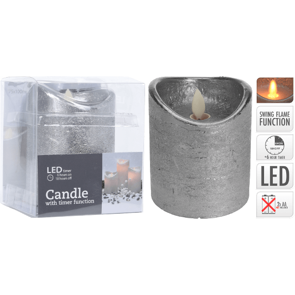 GYERTYA LEDES 75X100MM, METAL EZÜST WAX, ELEMES, IDŐZÍTŐS