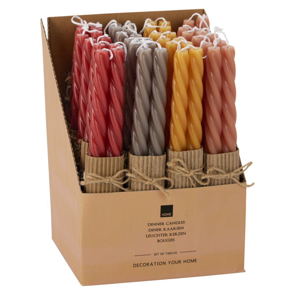 Ez a 2 darabos, viasz alapanyagú gyertya szett csavart kialakításával és visszafogott színeivel egyszerre dekoratív és funkcionális választás.