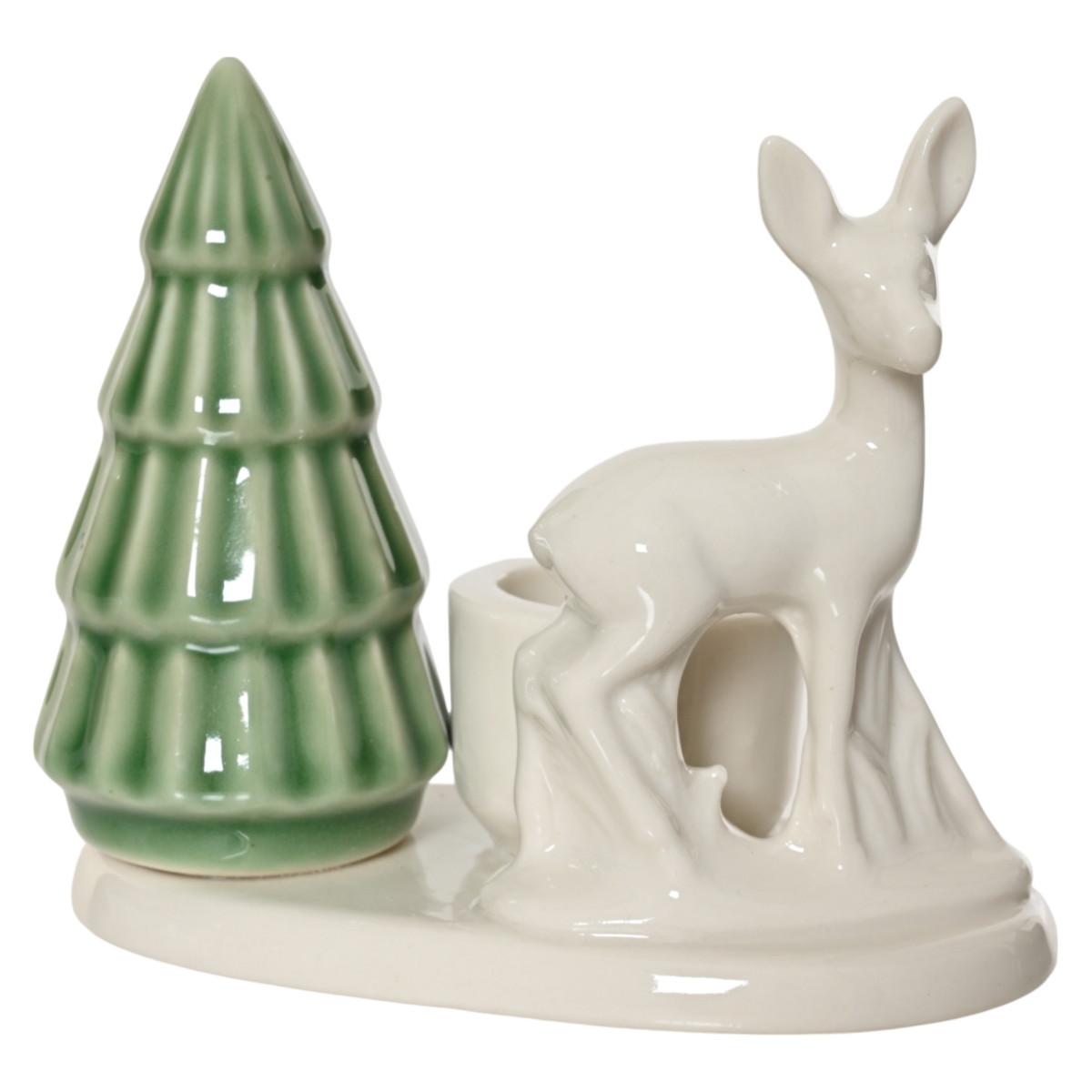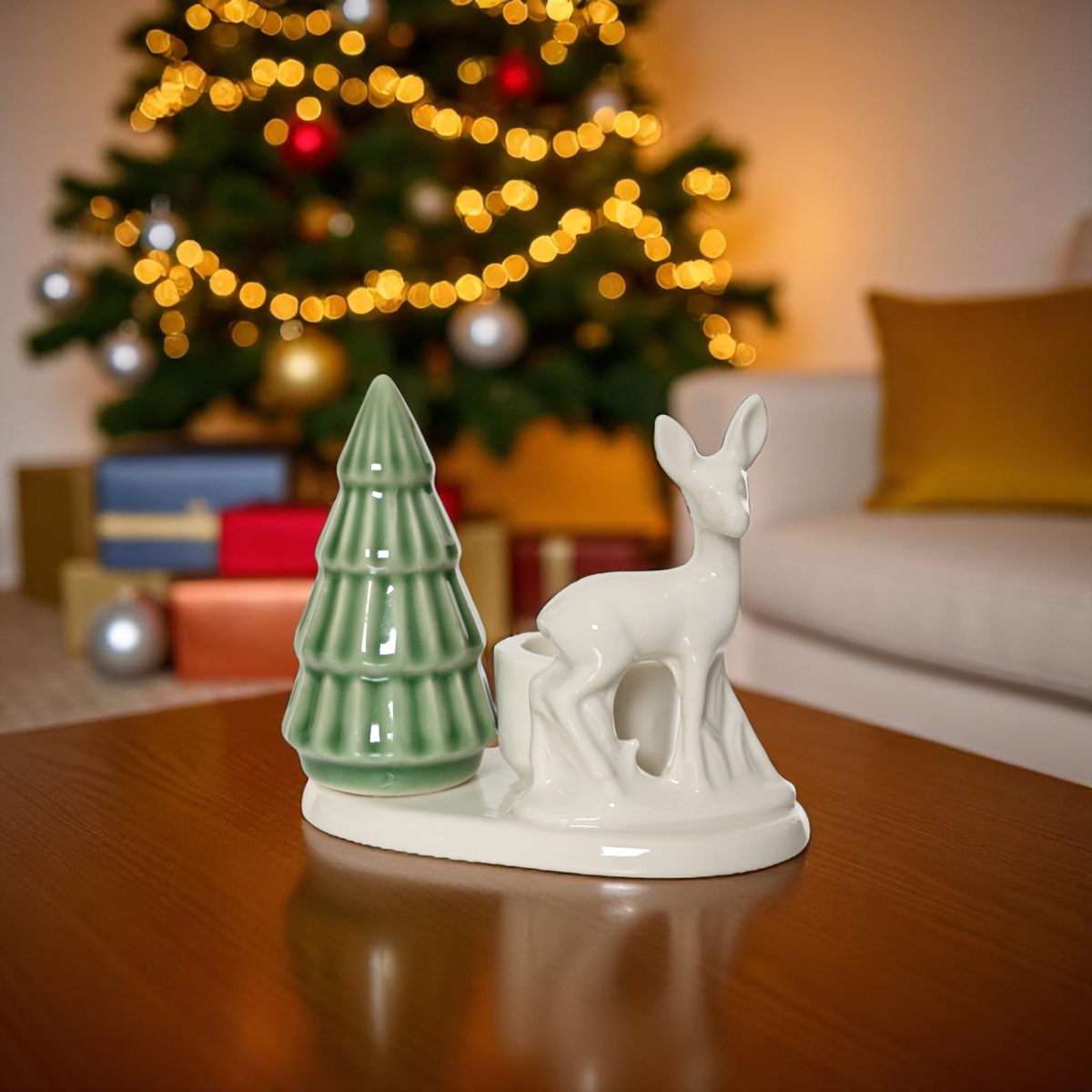 Ez a bájos porcelán gyertyatartó zöld fenyőfával és fehér rénszarvassal igazán meghitt hangulatot teremt otthonodban az ünnepek alatt.