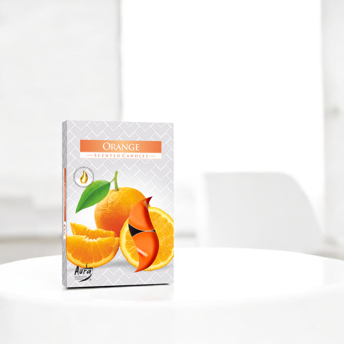 Narancs illatú 6 db-os teamécses szett, mely használatával igazán kellemes atmoszférát teremthetünk adott helyiségben, amely az ünnepi hangulatot is fokozza.