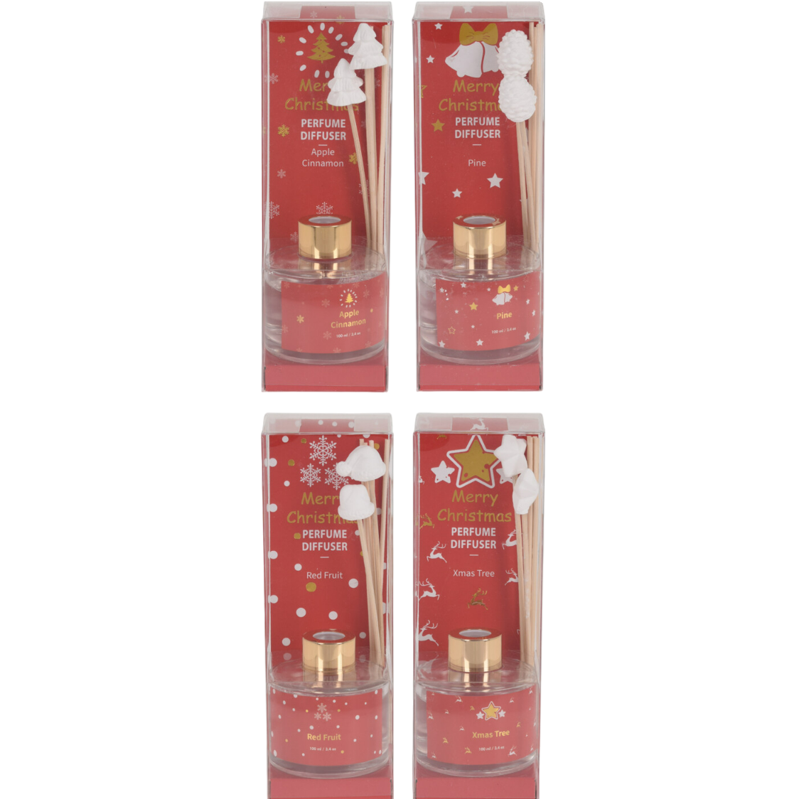 100 ml-es illatosító 4 féle illatban (Apple Cinnamon, Red Fruit, Pine, Xmas Tree), üveg tartóban, 6 pálcikával. Ezzel az illatosítóval biztosan örömtelibbé varázsolhatjuk az ünnepeket.