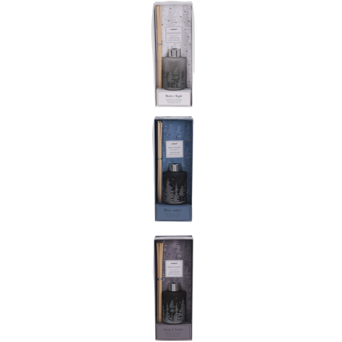 80 ml-es illatosító üveg tartóban, 6 rattan pálcikával, 3 féle illatban (Green & Violet, Blue water, Winter Night). Ezzel az illatosítóval biztosan örömtelibbé varázsolhatjuk az ünnepeket.