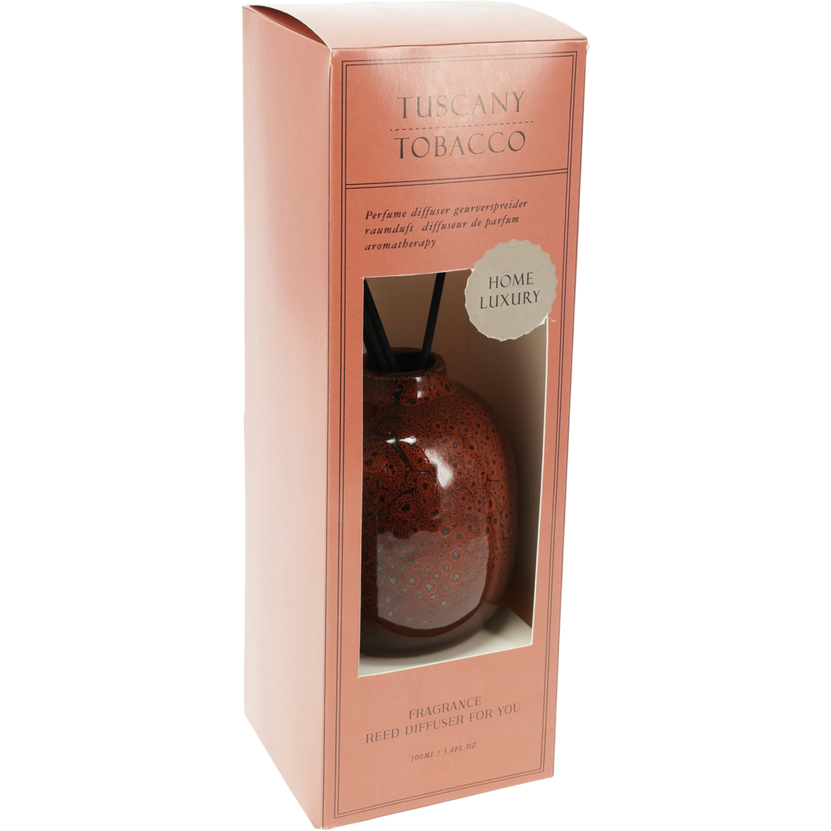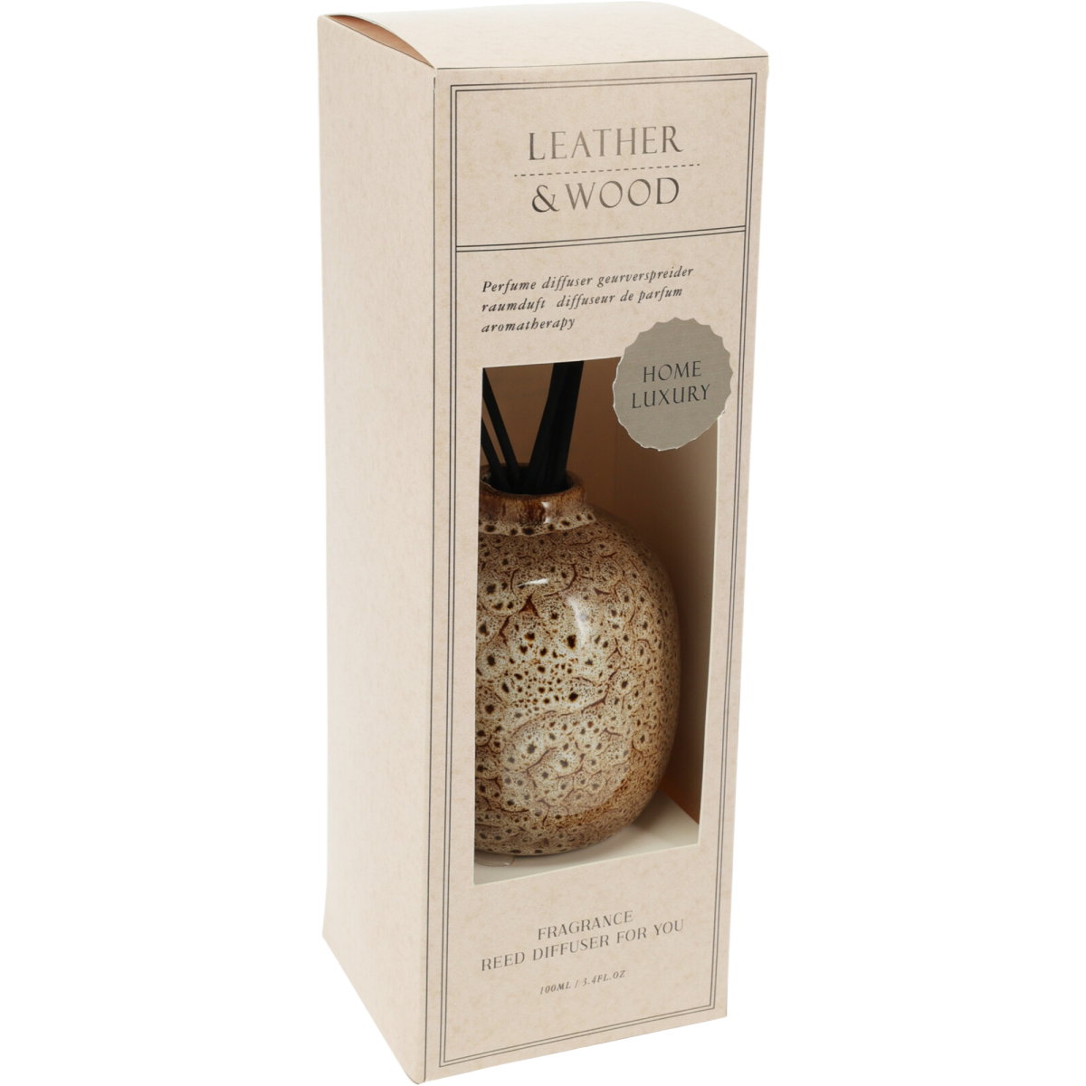 Ez az illatosító szett nemcsak kellemes illatot, hanem dekoratív megjelenést is nyújt. A különleges mintázatú kerámia edény modern és természetes hangulatot teremt otthonodban. A szett két illatban érhető el: Leather & Wood vagy Tuscany Tobacco, így hangulatodhoz igazíthatod a választást.