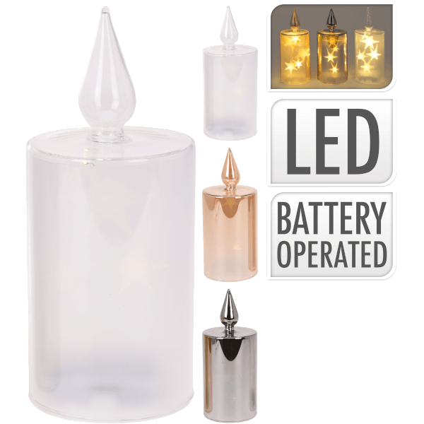 LED-es gyertya 5LED, anyaga: üveg. Mérete: 9x9x20 cm. Elemet nem tartalmaz.