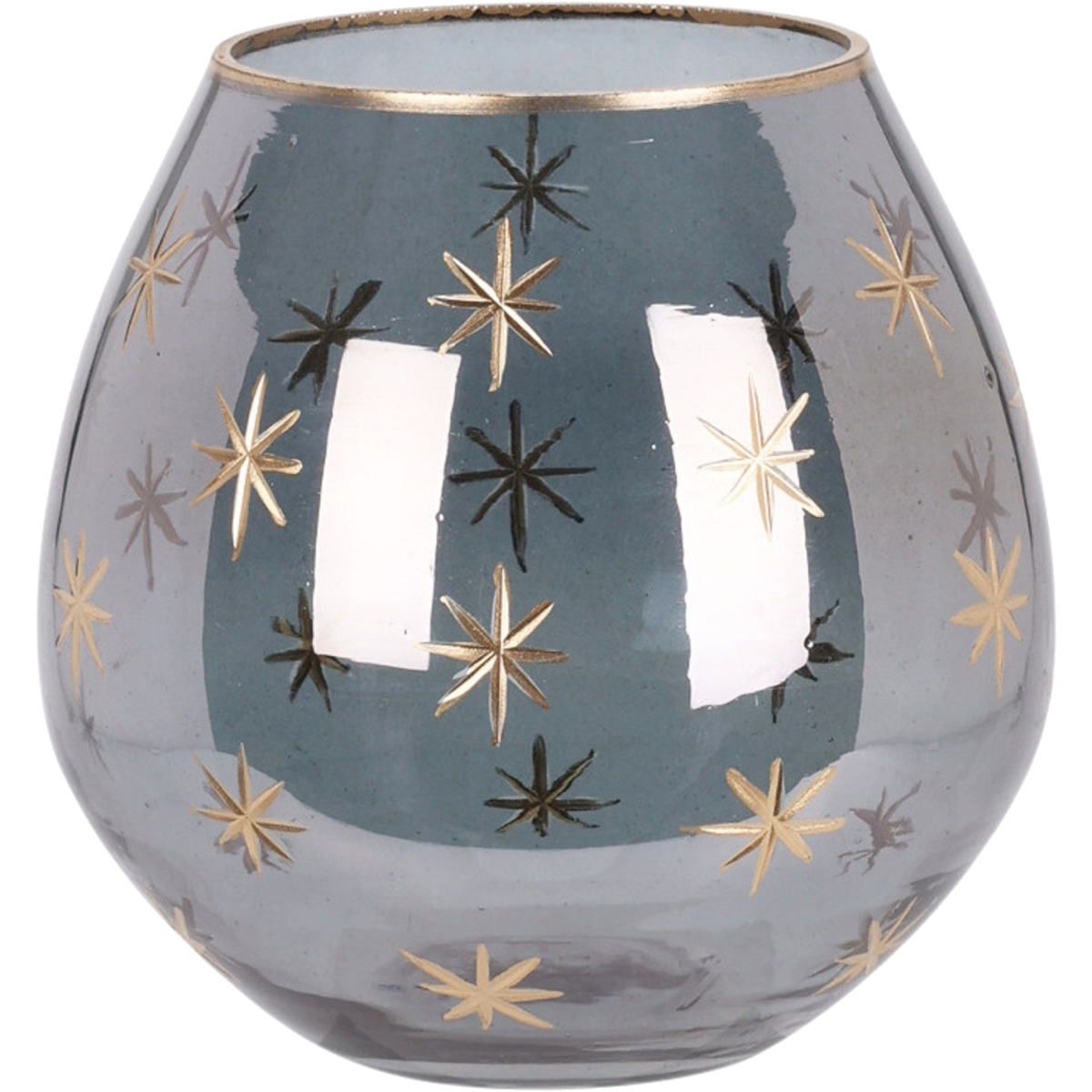 A mécsestartó egy elegáns, 10x10x10 cm méretű, füstös kék üvegből készült tárgy, melyet finom arany mintázat díszít. A modern és klasszikus elemeket ötvöző design teszi ideálissá bármely otthoni dekoráció kiegészítésére. Az üveg anyaga biztosítja a tartósságot, míg az arany minta egy luxus megjelenést kölcsönöz neki. Tökéletes választás lehet azok számára, akik egy kis eleganciát szeretnének csempészni otthonukba vagy különleges ajándékot keresnek.
