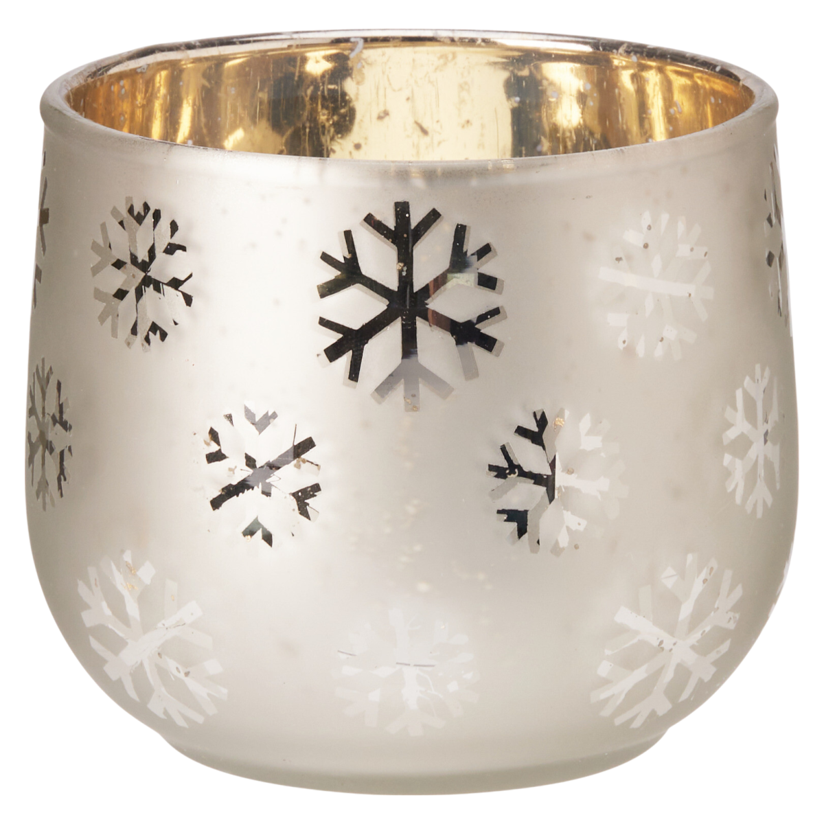 Ez a hópehely mintával díszített, fehér színű üveg mécsestartó visszafogott matt felületével kellemes, meghitt fényt varázsol a térbe. 10 cm-es magasságával és elegáns mintázatával tökéletes választás az ünnepi dekorációhoz, legyen szó asztaldíszről, ablakpárkányról vagy komód tetejéről. Egyszerre ünnepélyes és természetes hatású kiegészítő.