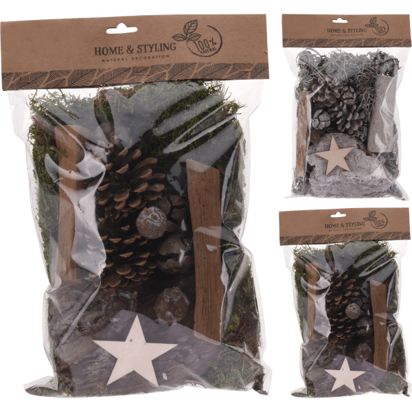 POTPURRY, ANYAG:MOHA,TOBOZ,FA KÉREG 17X8X25CM, NATÚR SZÍNBEN